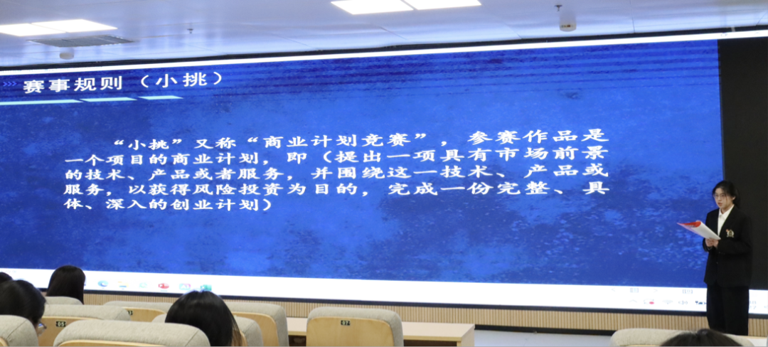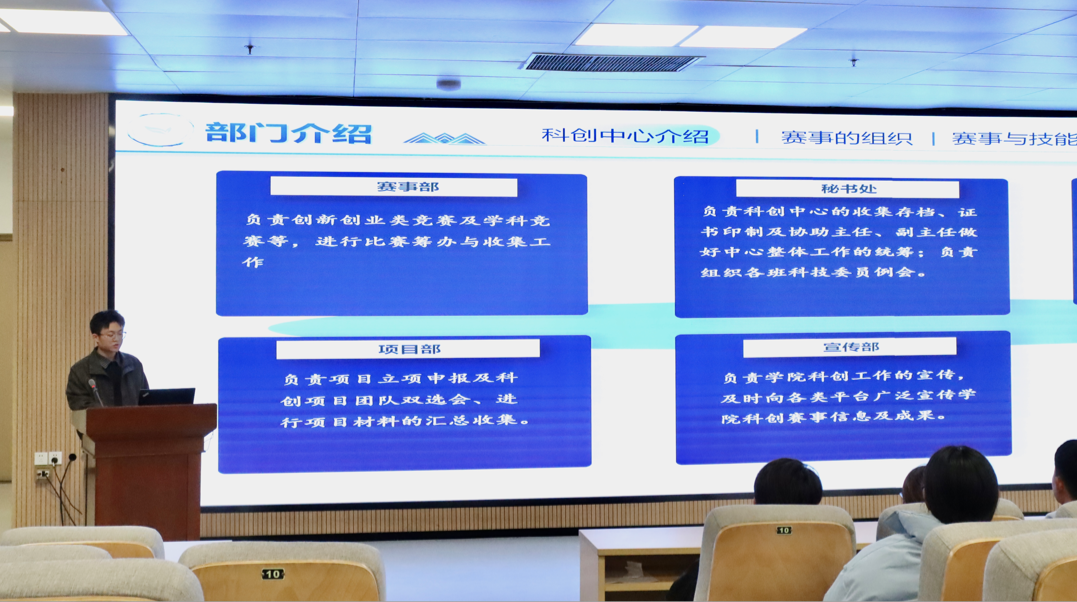 主持人李欣媛代表学院对到场嘉宾与同学们表示热烈欢迎,并详细介绍了本次宣讲会的流程。实践创新部干事为同学们详细解读了本次科创比赛的参赛要求、报名流程、评审标准及各类参赛注意事项,帮助大家精准掌握比赛规则、摸清参赛门道,为后续参赛做好充足准备。