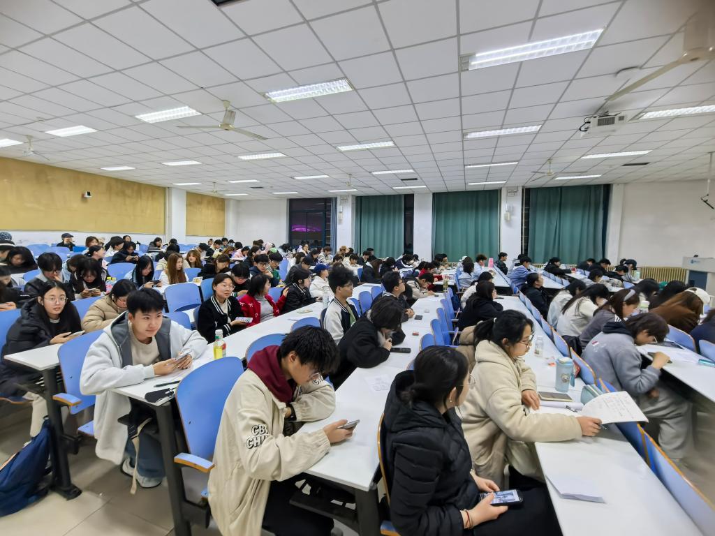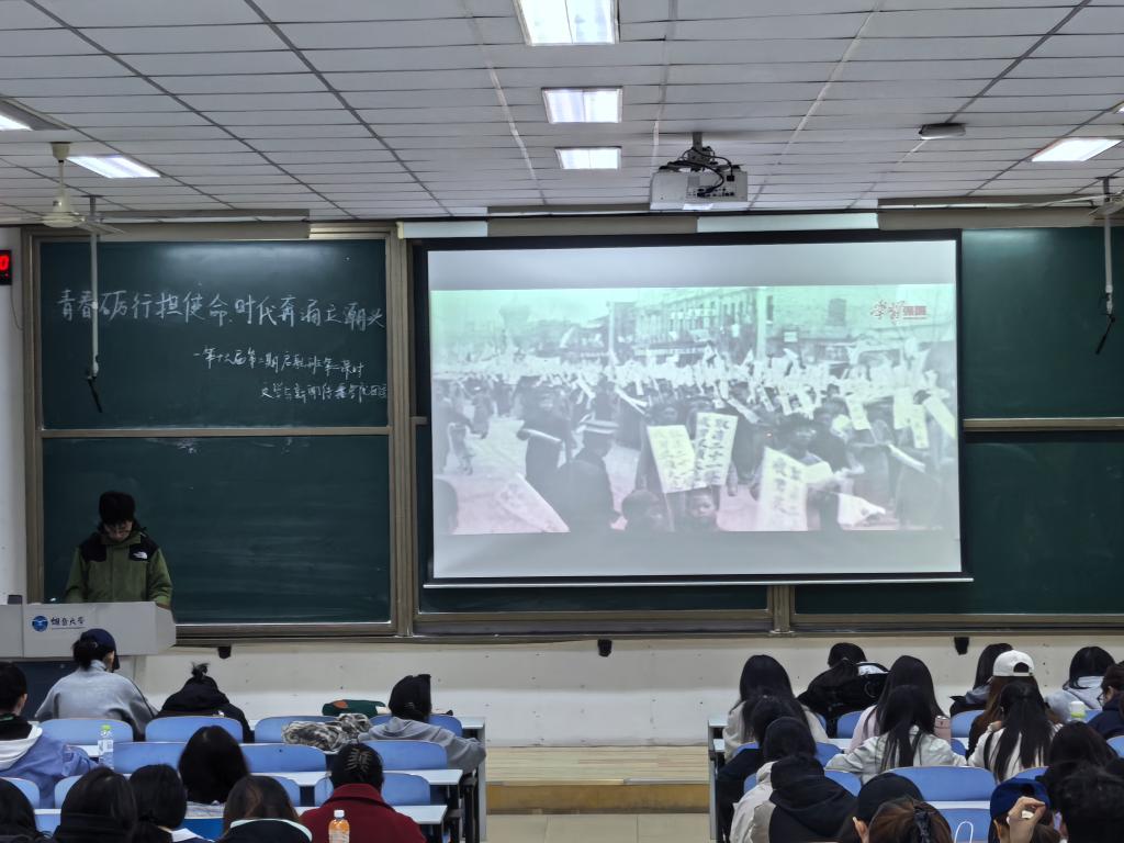 主持人立足新时代青年的使命担当,明确团学干部的引领服务职责,为活动奠定了青春奋进、实干担当的基调,顺利引入活动主题。在核心分享环节,25级的学生代表依次登台,结合自身团学工作经历,分享日常履职中的工作感悟与经验体会,讲述服务同学、锤炼自我的成长故事,用真挚的表达展现青年学生干部的初心与风采,传递青年骨干的责任与担当。最后,全体学生干部共同观看“新时代青年骨干风采”主题视频并交流心得,学生干部在鲜活影像中感悟青年担当,在思想交流中深化对“青春砺行使命”内涵的理解,切实将学习感悟转化为履职尽责的思想自觉,为今后开展团学工作奠定坚实思想基础。