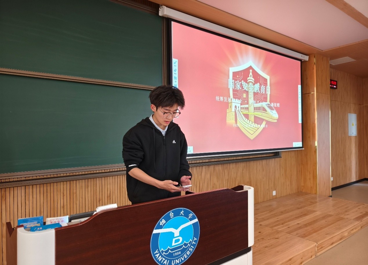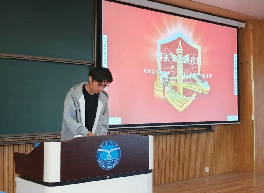活动伊始,孙豪同学围绕国家安全重要意义、总体国家安全观核心要义进行主题宣讲,系统讲解政治安全、网络安全、科技安全、数据安全等十六大安全领域重点内容,通过讲解钓鱼邮件泄露科研信息、随意拍照泄露军事机密等典型案例,生动剖析生活中潜在的安全风险,让同学们深刻认识到国家安全与日常生活息息相关。随后,活动进入观影环节,现场播放国家安全教育短片,带领同学们学习《中华人民共和国国家安全法》。在安全防范心得分享环节,徐继超、杨志恒同学结合学习体会发言,进一步普及国家安全知识,强化风险防范意识。为巩固学习成效,本次活动设置线上知识答题环节,同学们通过答题平台参与国家安全知识竞赛,在比拼中深化理解、在交流中提升认识。