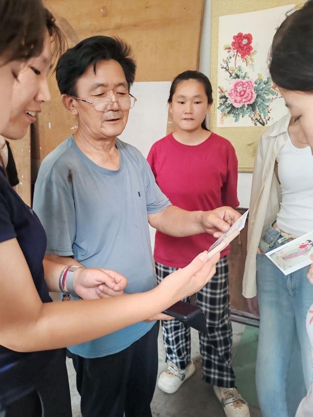 实践过程中,学生们不仅是观摩者,更成为体验者。在“吕延祥”老师手把手的悉心指导下,他们亲身尝试了从“抹灰”起稿到细致彩绘的关键工序。看似简单的炭灰勾线,实则对力度、角度和经验有着极致要求;每一幅色彩明丽的年画背后,都蕴藏着深厚的民俗文化与美好寓意。“亲手体验后,才真正感受到这项技艺的分量和传承的紧迫性,”队员王同学感慨道,“这也更坚定了我们运用所学,为它注入时代活力的决心。”