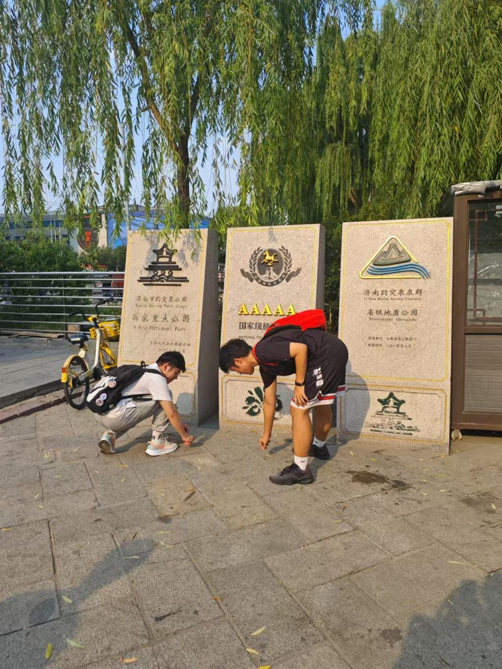 在清晨的趵突泉公园,晨雾还未散尽,三股泉水便已在石池中欢快地喷涌,宛如大地跳动的脉搏。我们一行人带着垃圾袋和夹子,在这里开启了一场特殊的社会实践——捡垃圾环保行动。